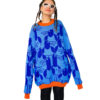 Woven in three colors per line, in intarsia, double cuffs and waistband.