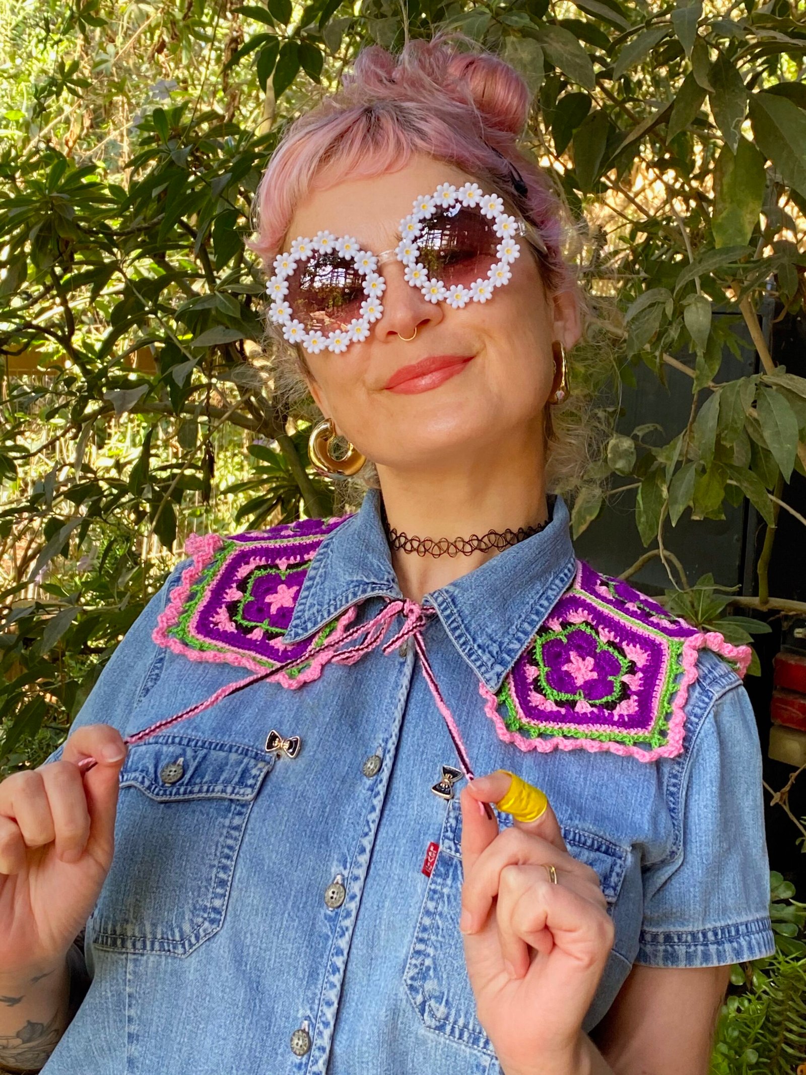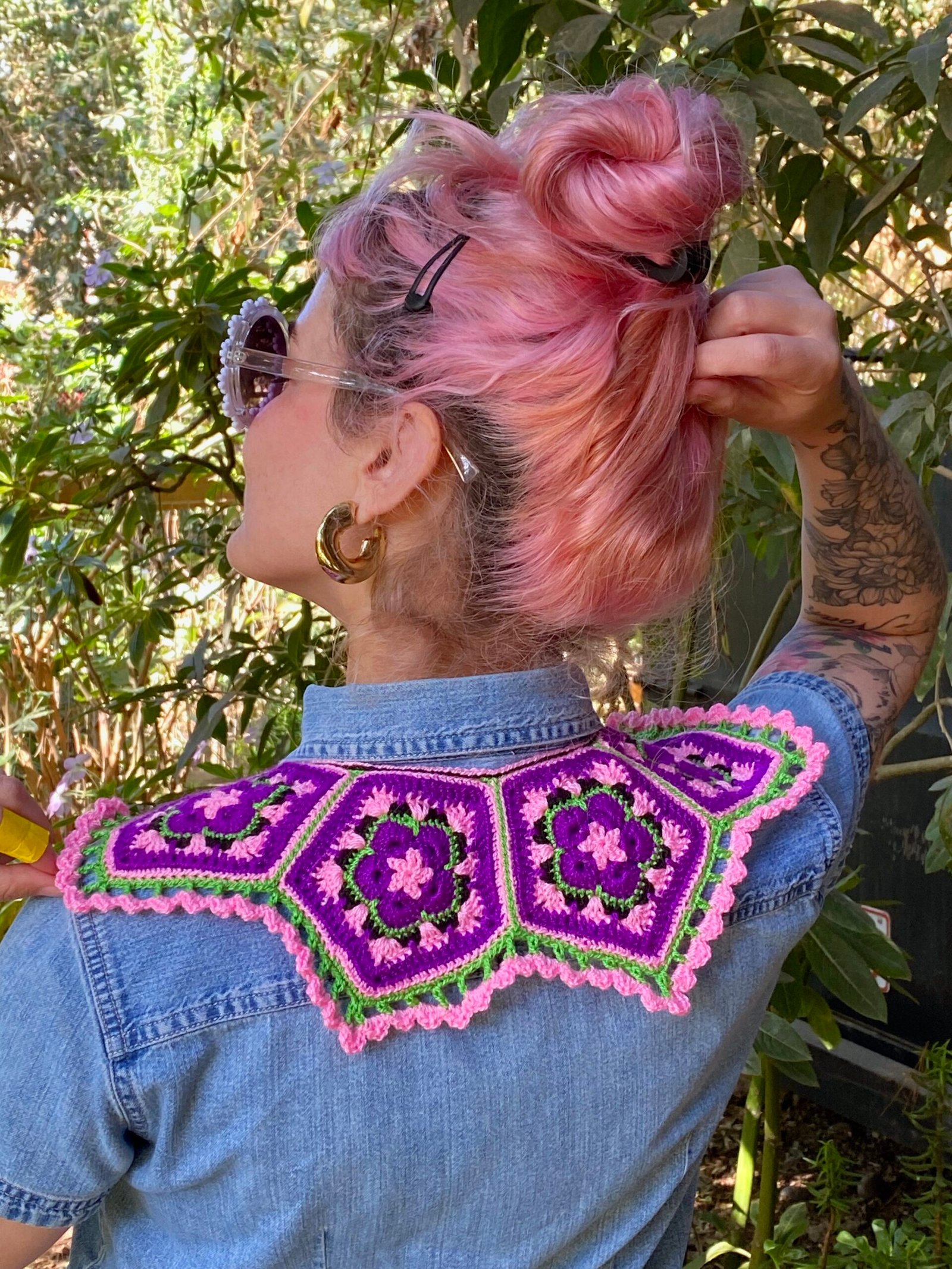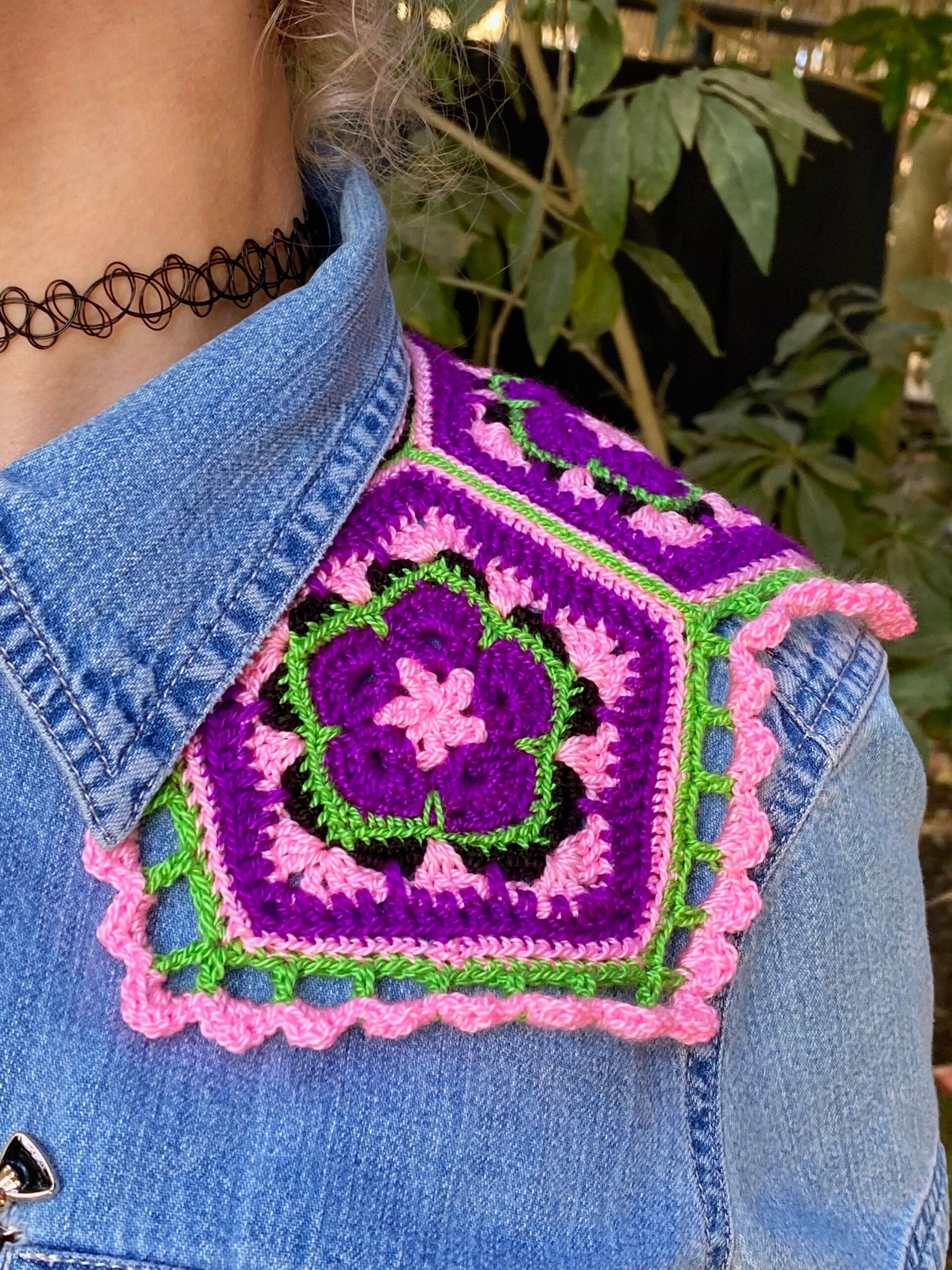 Cuello tejido a crochet en hilado acrílico hipoalergénico.