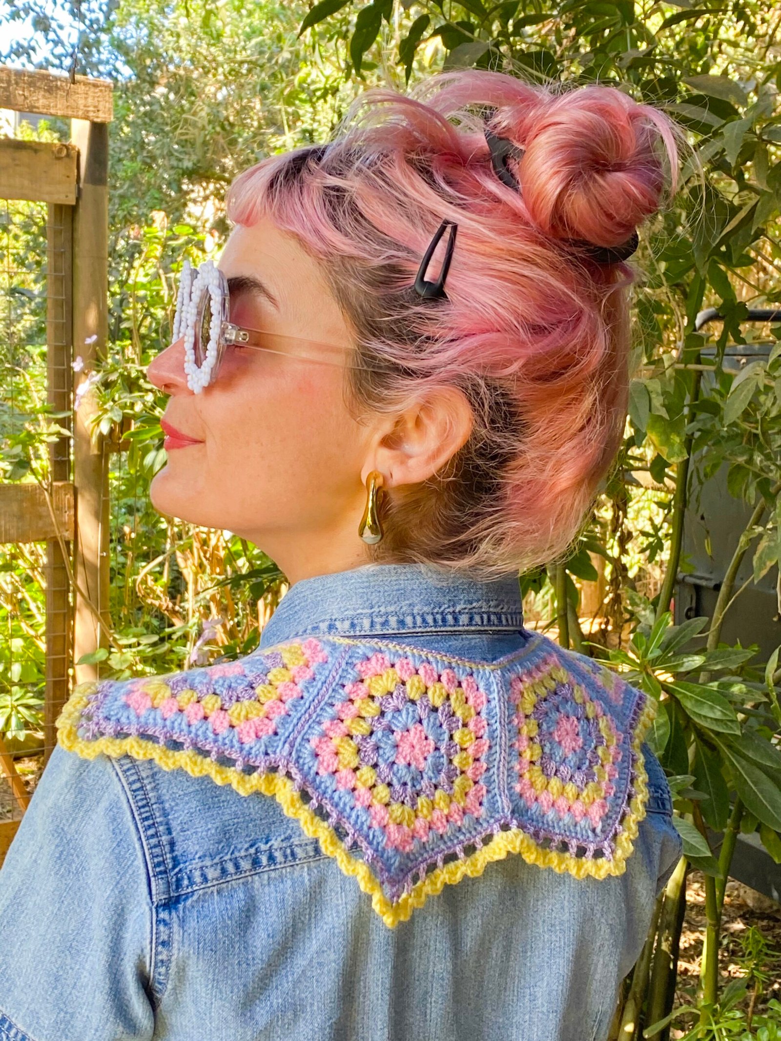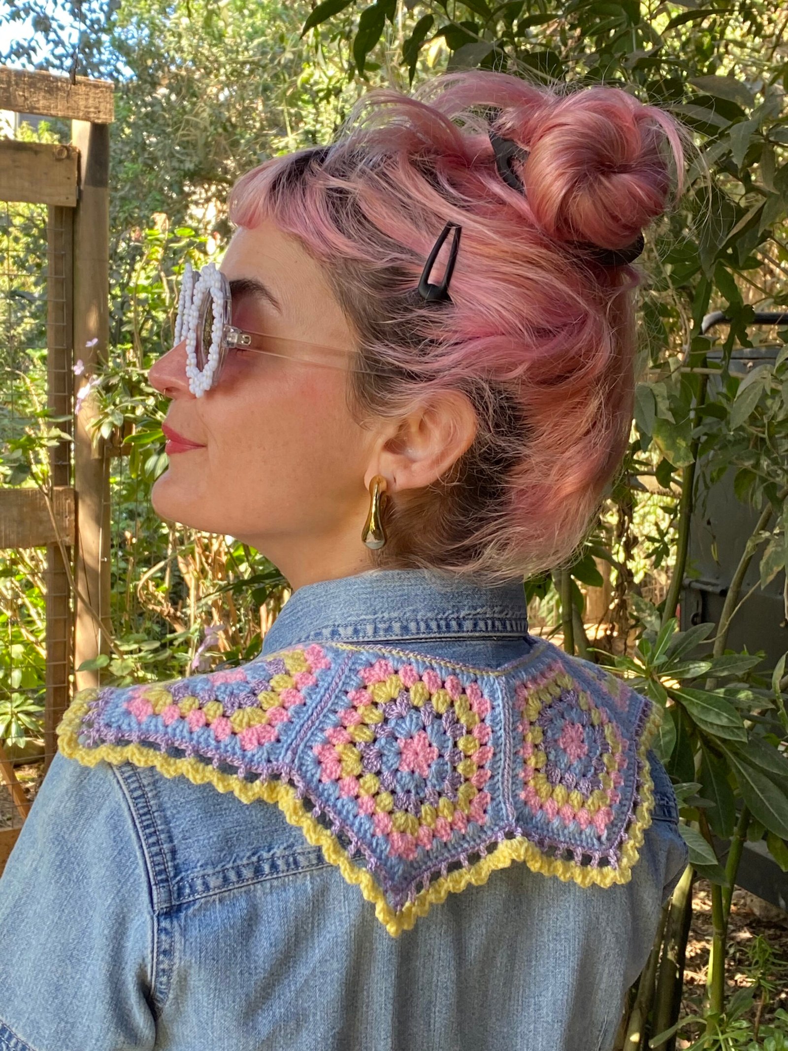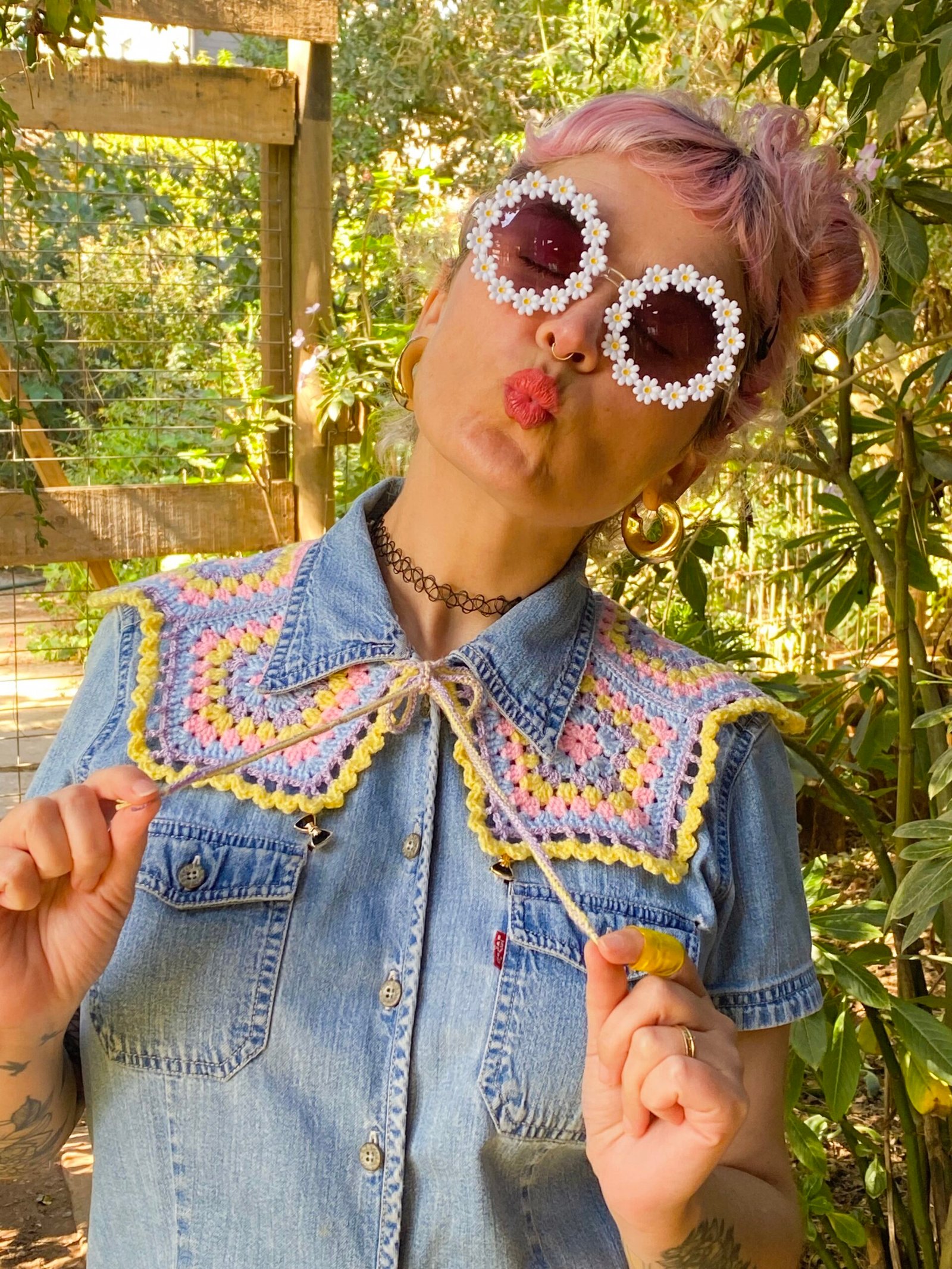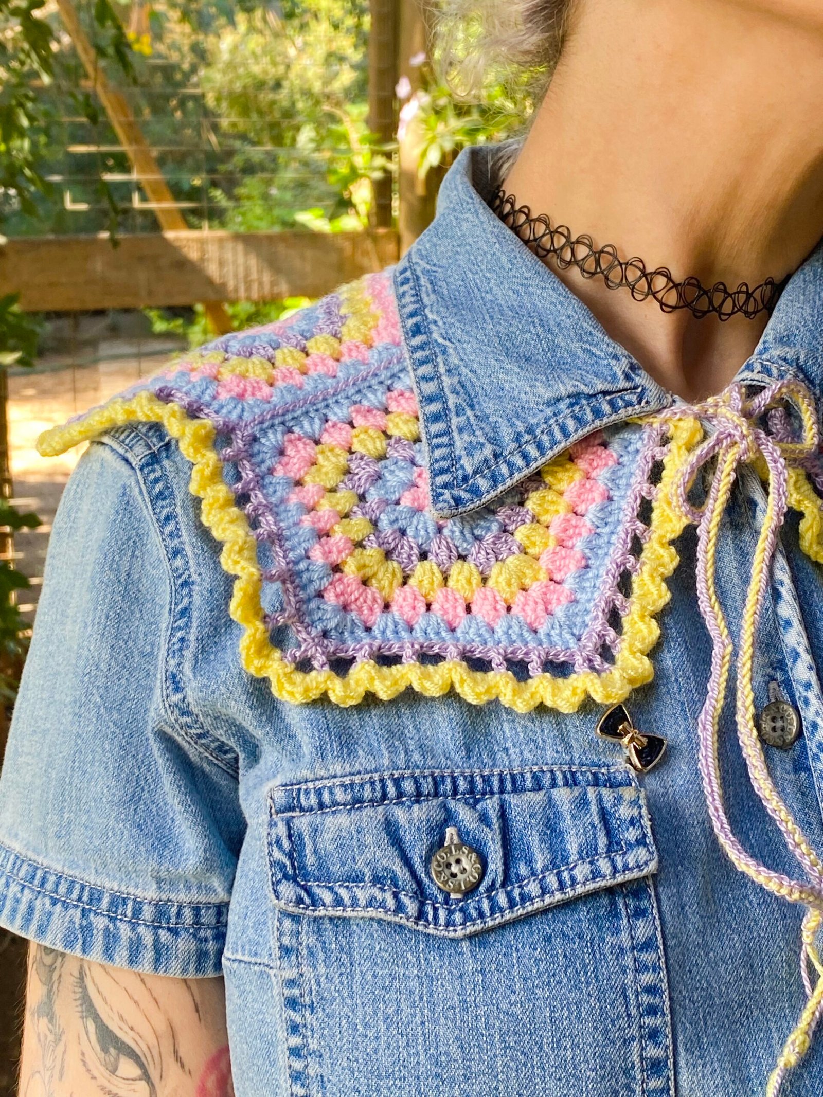Cuello tejido a crochet en hilado acrílico hipoalergénico.